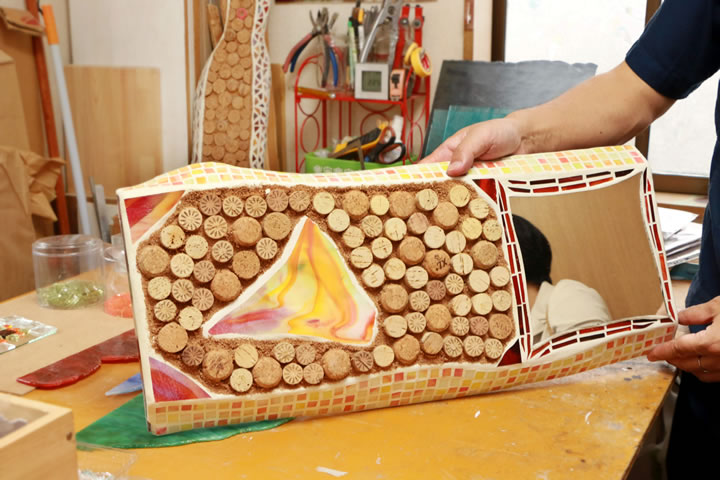 「アンジェラは、本格的なアート作品を手がけていました。発想が斬新で、古いバイクをモザイクガラスで彩ったり、洋服のコートを使ったりと、鑑賞用の作品を多く手がけていました。