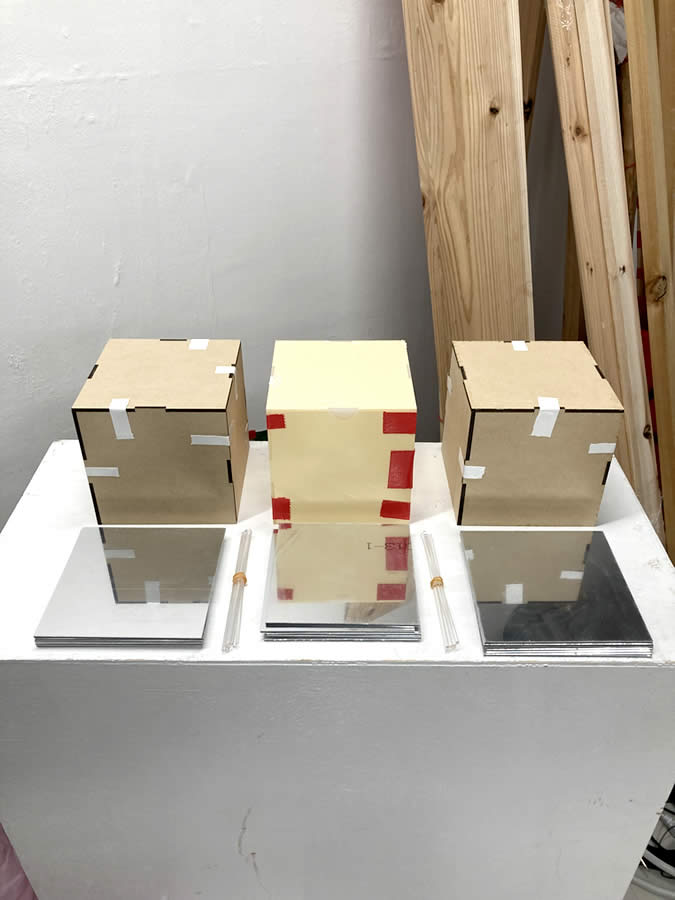 以前から鏡を用いた立体作品やインスタレーションを制作しており、卒業制作に際しても鏡を使用したいと考えておりました。